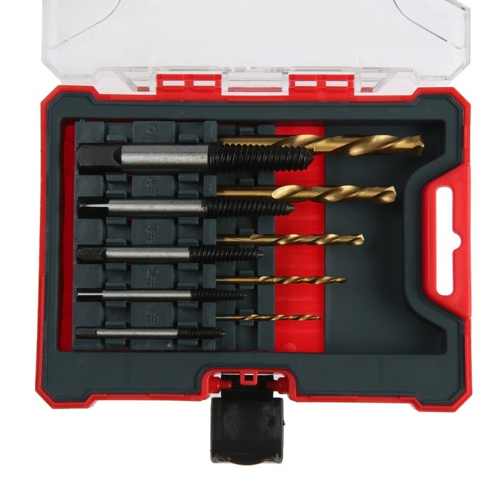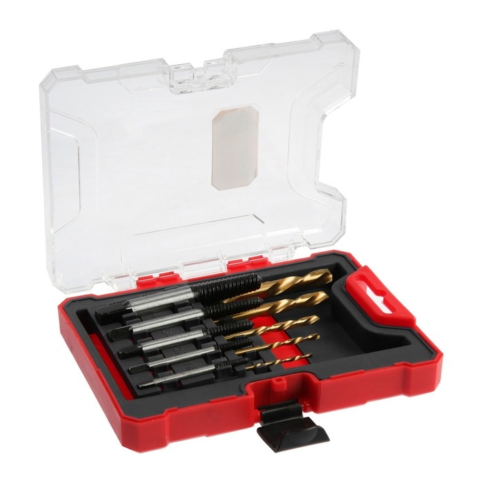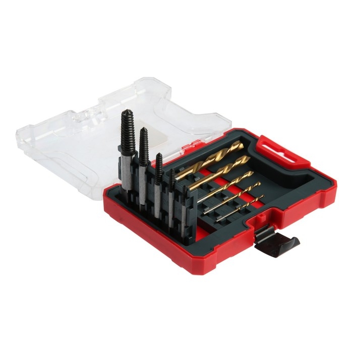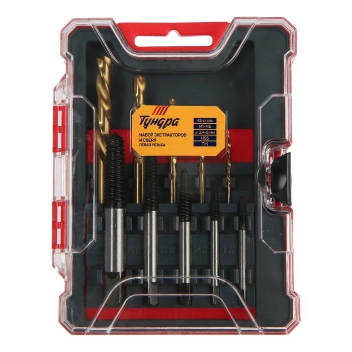 Набор экстракторов и сверл ТУНДРА, левая резьба, 45 сталь М1-М5, d=2.4-8 мм HSS, TIN