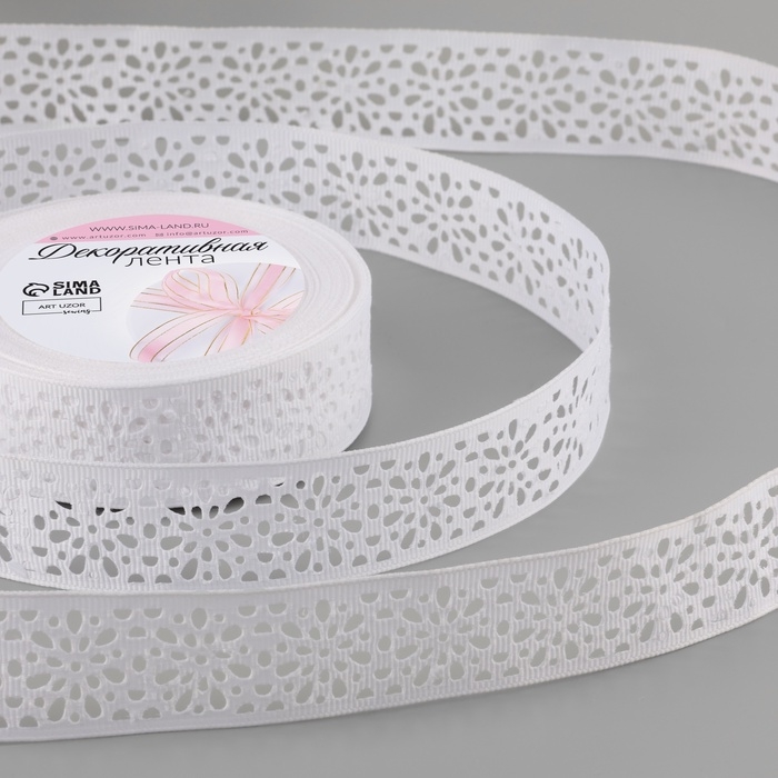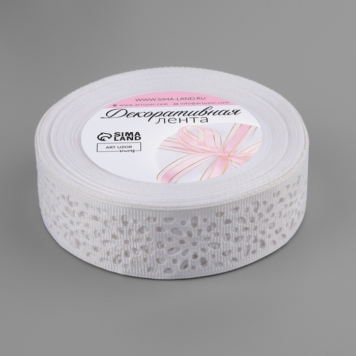 Лента декоративная, репсовая, ажурная, 25 мм × 9,1 ± 0,5 м, цвет белый