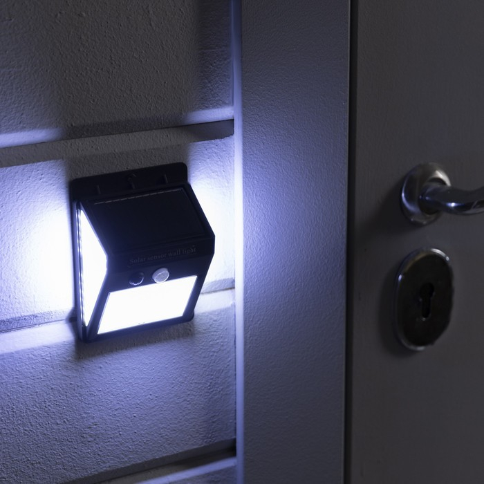 Садовый светильник на солнечной батарее с датчиком движения, накладной, 9.5 × 13 × 5 см, 30 LED, свечение белое