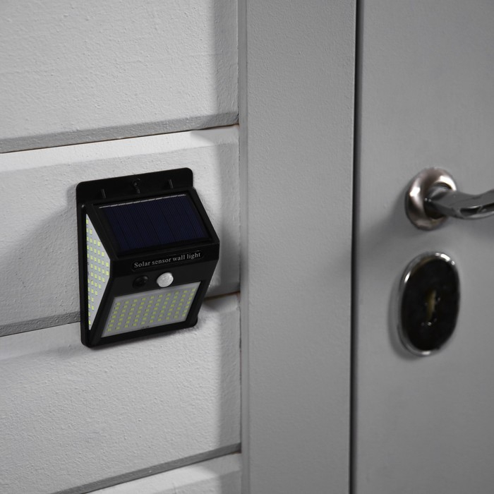Садовый светильник на солнечной батарее с датчиком движения, накладной, 13 × 9.5 × 5.5 см, 100 LED, свечение белое