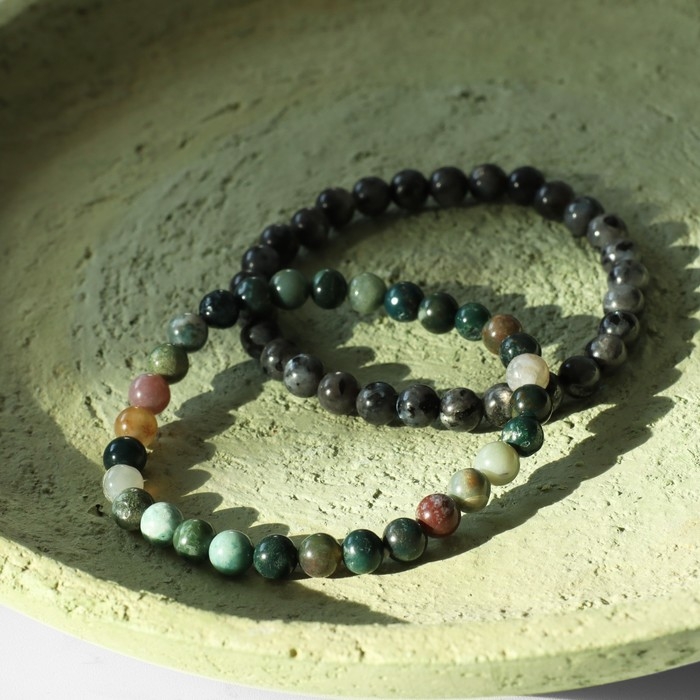 Набор браслетов 2 шт. шар №6 «Лабрадор и Яшма»