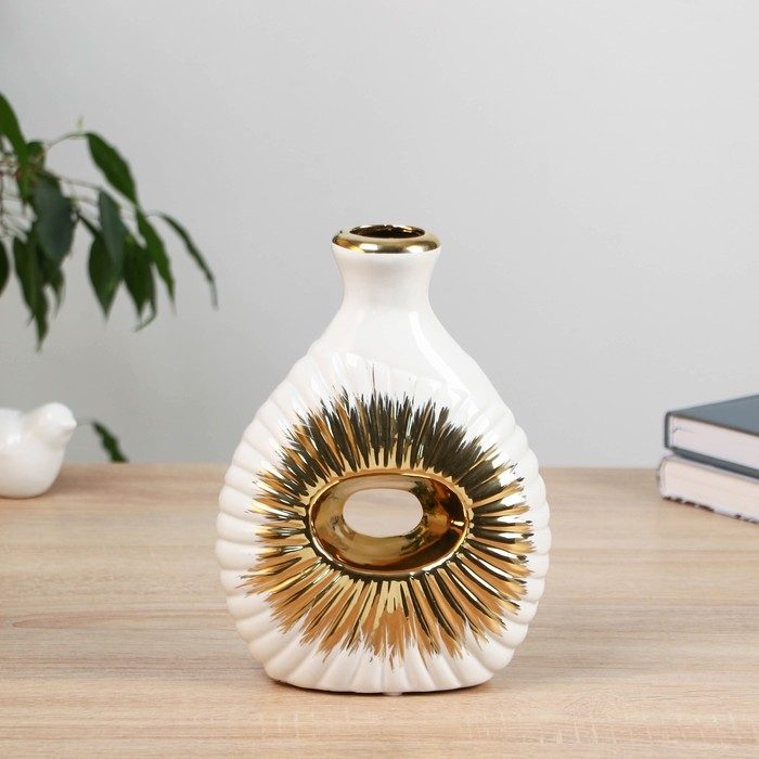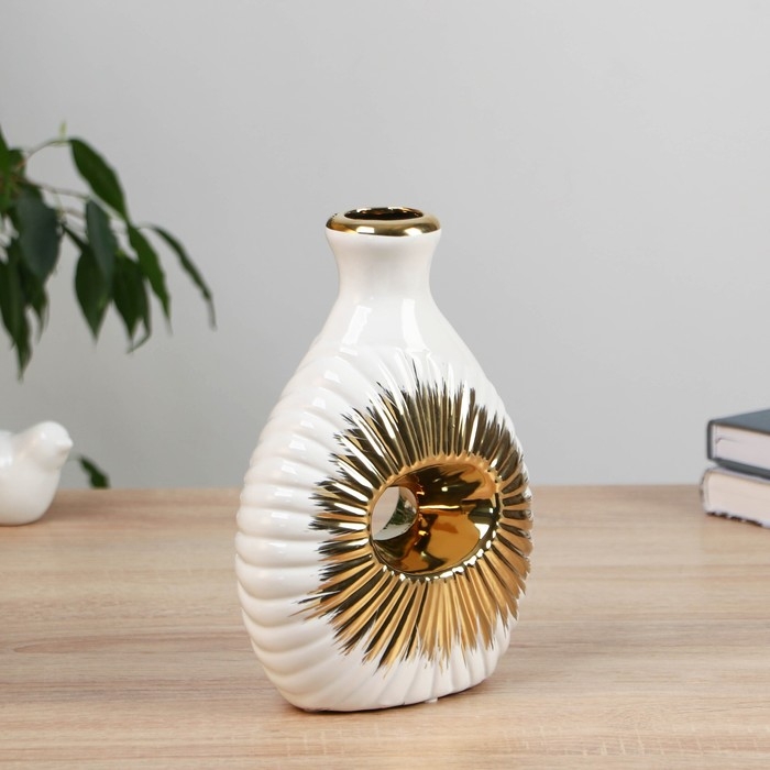 Керамическая ваза декоративная настольная «Кейдн», для цветов, сухоцветов, 21 см, белый