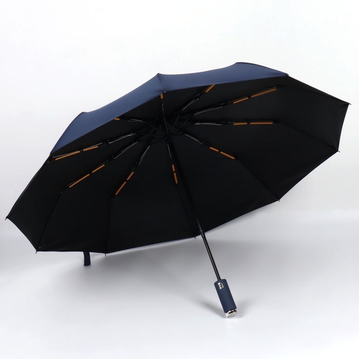 Зонт автоматический «Однотон», с фонарем, 3 сложения, 10 спиц, R = 51/58 см, D = 116 см, цвет синий
