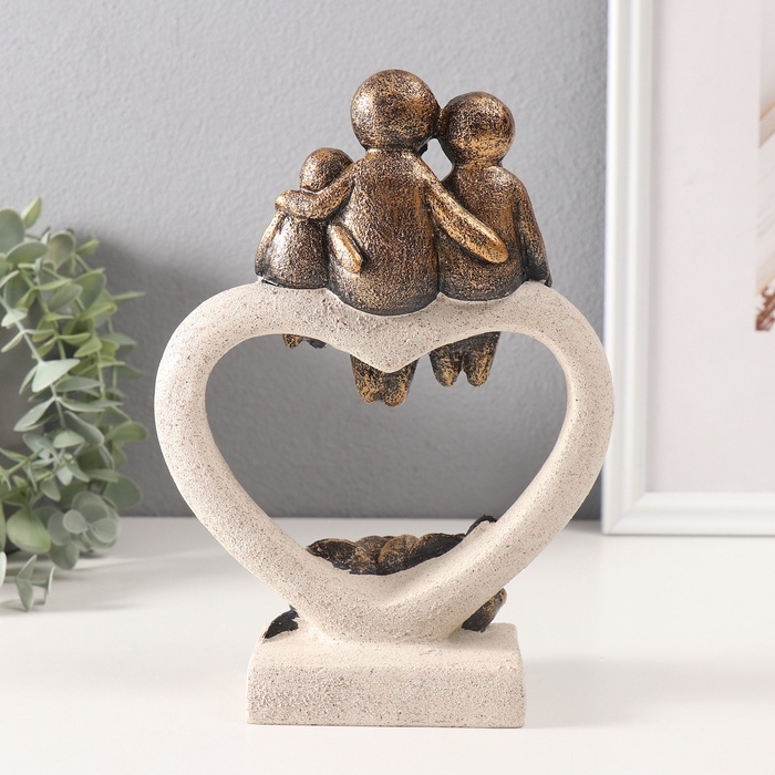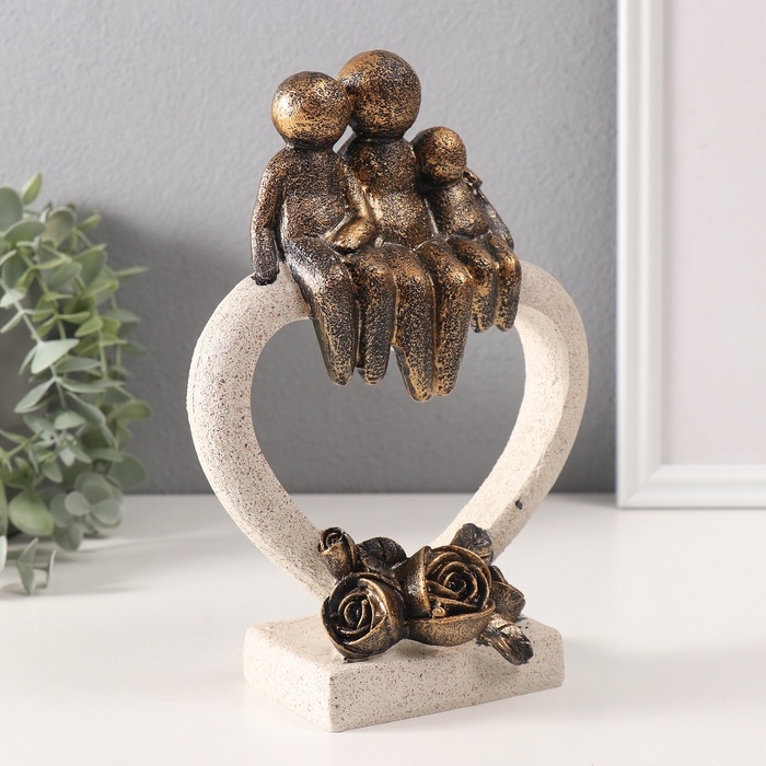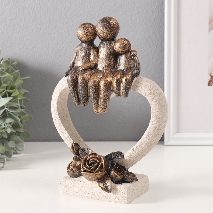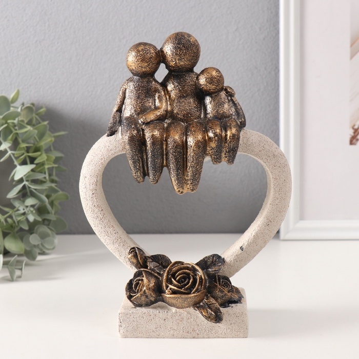 Сувенир полистоун "Семья на каменном сердце с розами" под бронзу 7,8х15,3х21 см