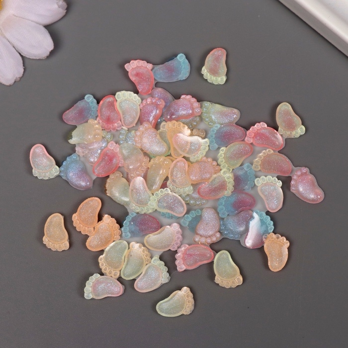 Декор для творчества акрил "Детский след" светится в темноте набор 60 шт 1,2х0,9 см