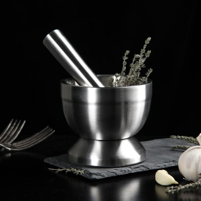 Ступка с толкушкой Доляна Steel, 10 см, нержавеющая сталь