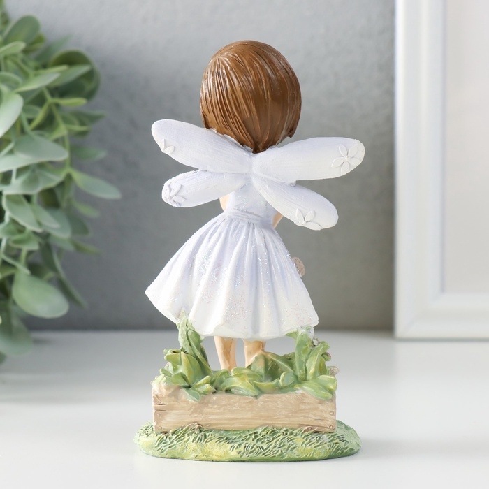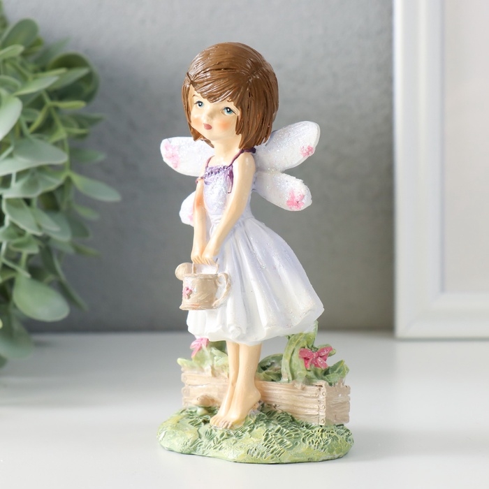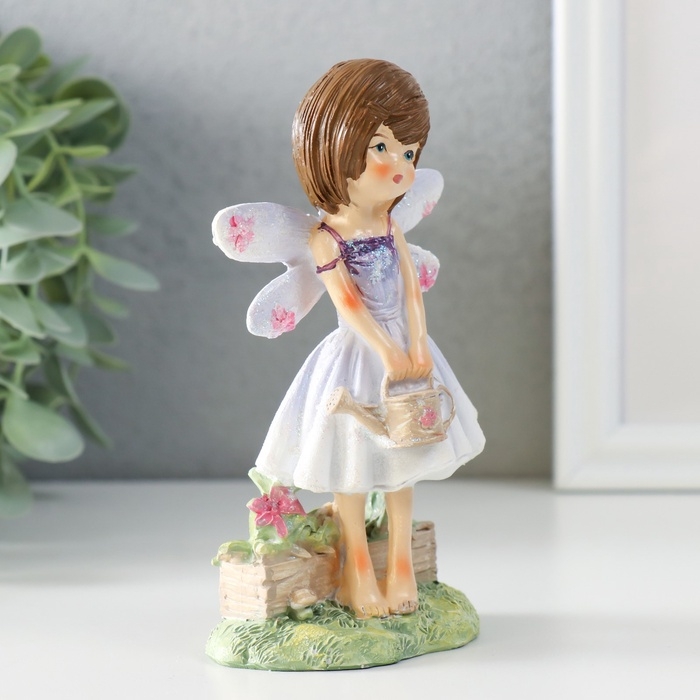 Сувенир полистоун "Малышка в сиреневом платье с крыльями, с леечкой" 7,5х5х13 см