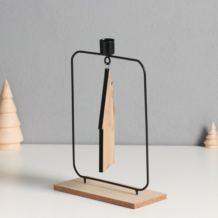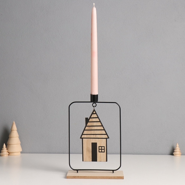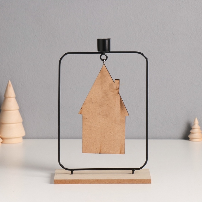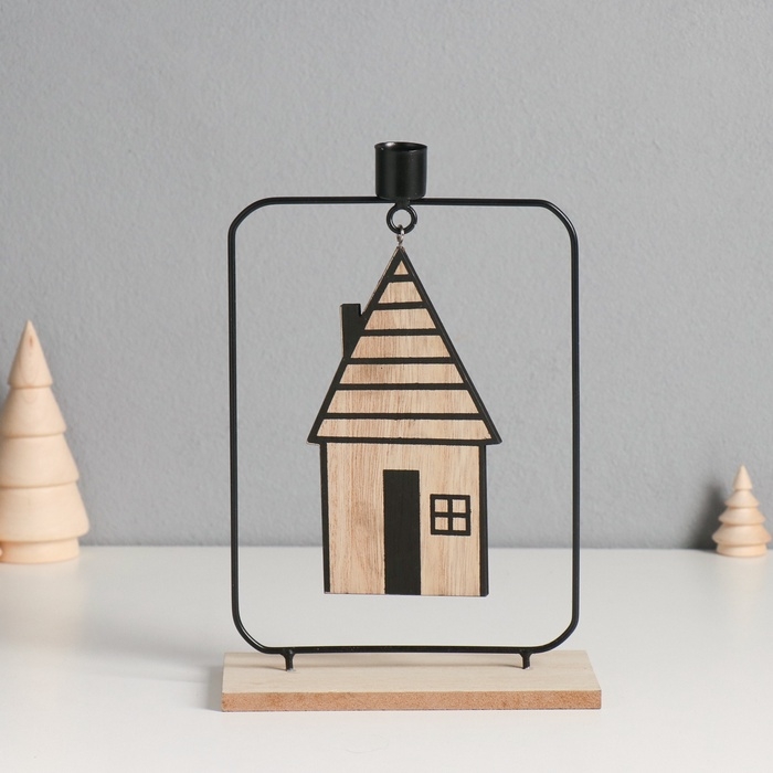 Подсвечник металл, дерево на 1 свечу "Домик" d=2 см 6х15х24 см