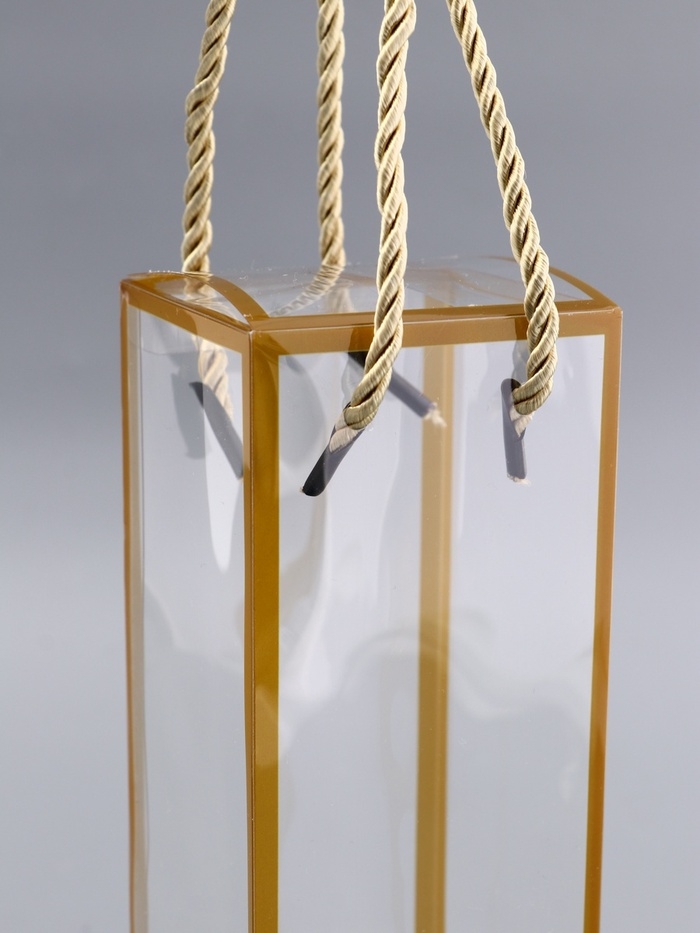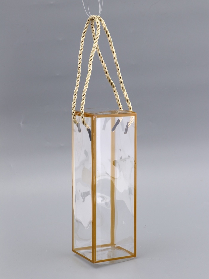 Коробка из PET с ручками, золотая, 7 х 7 х 21 см