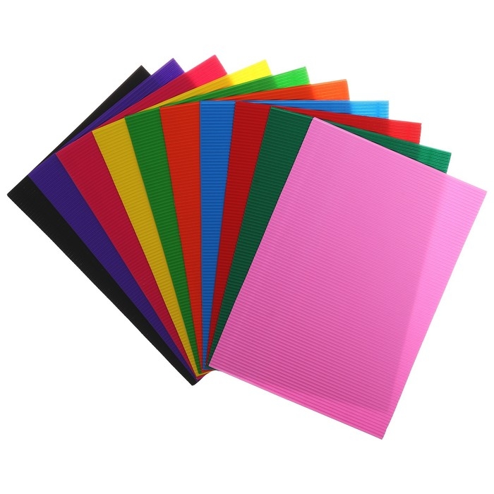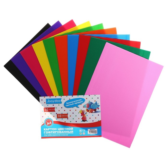 Картон цветной гофрированный Jooydoo, А4, 10 листов, 10 цветов