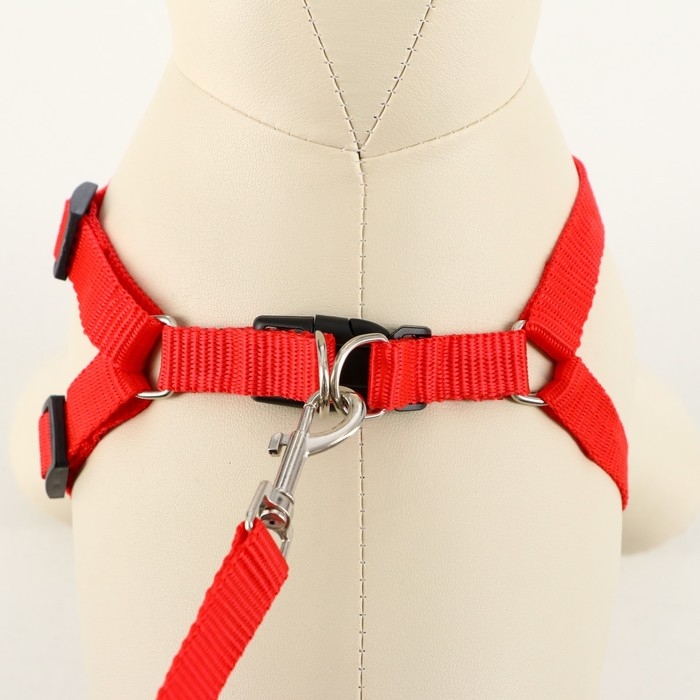 Комплект амуниции с мягкой шлейкой, L, поводок 120 х 1,5 см, ОШ 30-50 см, ОГ 36-56 см, красный 473