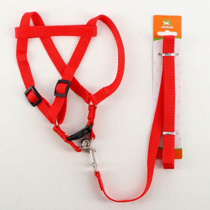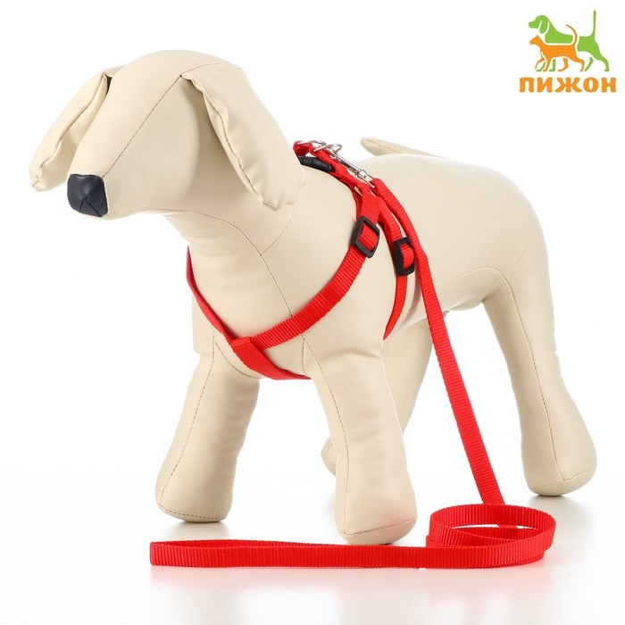 Комплект "Базис", поводок 120 х 1,5 см, шлейка 32-46 х 1,5 см, красный