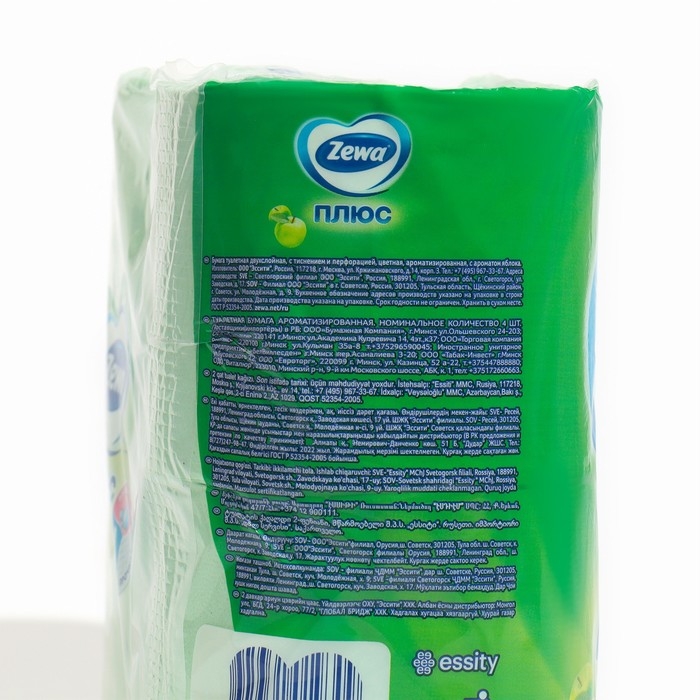 Туалетная бумага Zewa Плюс аромат «Яблоко», 2 слоя, 4 рулона