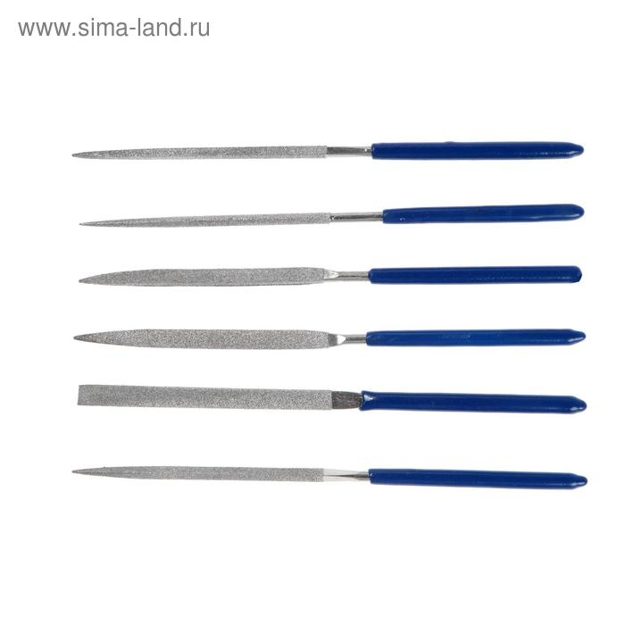 Набор надфилей алмазных ТУНДРА, обрезиненные рукоятки, 70 х 160 х 4 мм, 6 шт.
