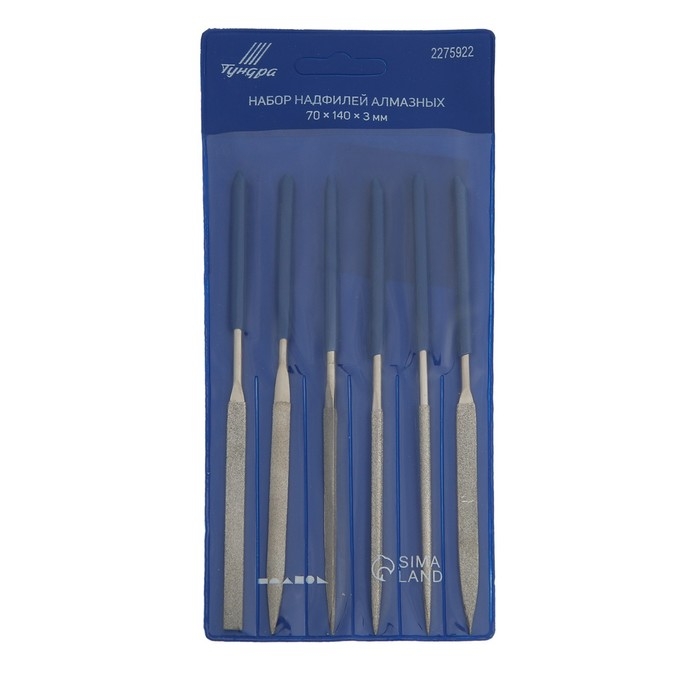 Набор надфилей алмазных ТУНДРА, обрезиненные рукоятки, 70 х 140 х 3 мм, 6 шт.