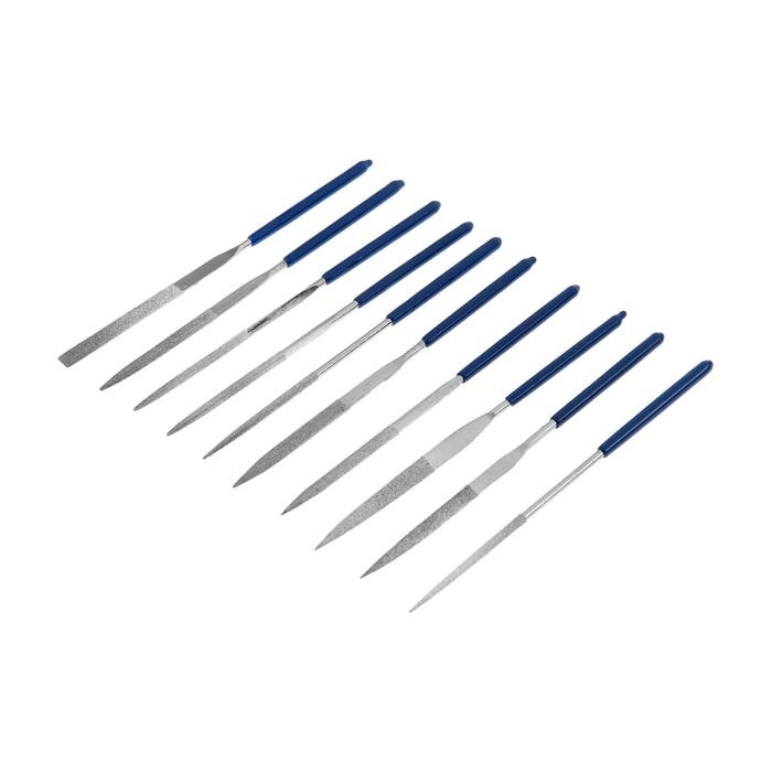 Набор надфилей алмазных ТУНДРА, обрезиненные рукоятки, 50 х 140 х 3 мм, 10 шт.