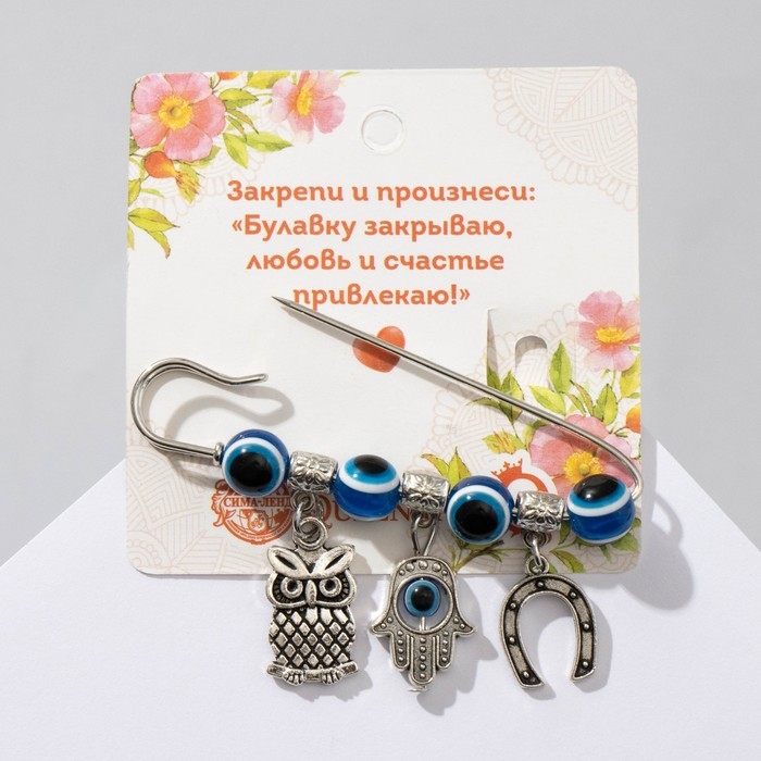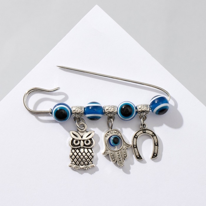 Булавка-оберег «От сглаза» 6см, цвет бело-синий в серебре