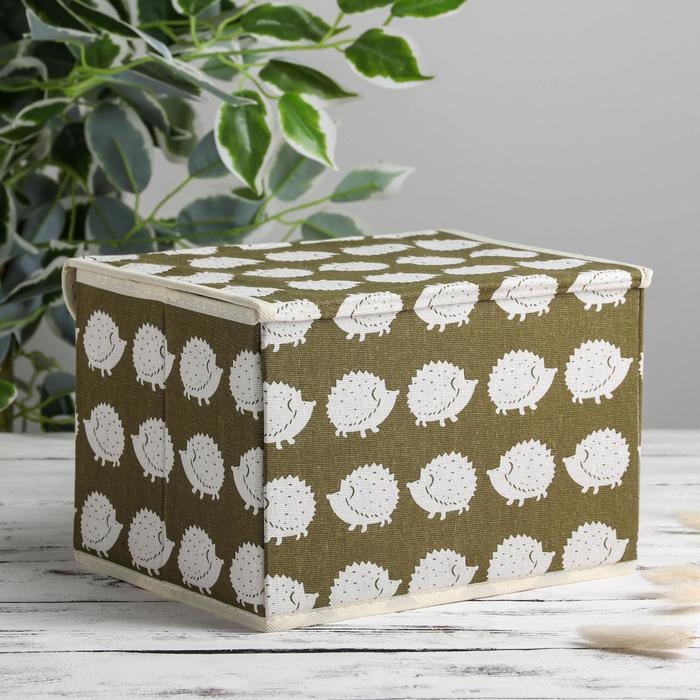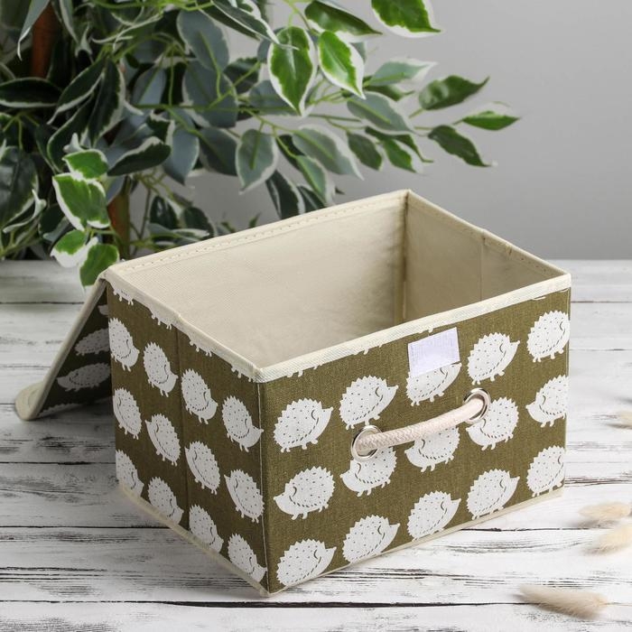 Короб стеллажный для хранения с крышкой «Ёжики», 25×20×17 см, цвет зелёный