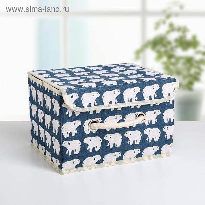 Короб стеллажный для хранения с крышкой «Северные мишки», 25×20×17 см, цвет синий
