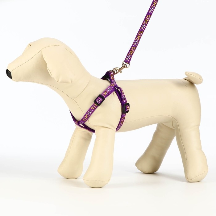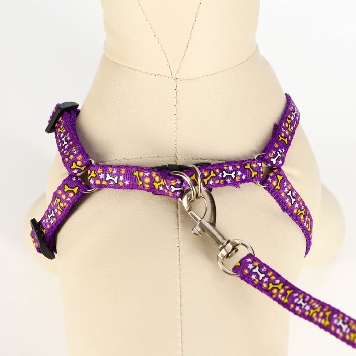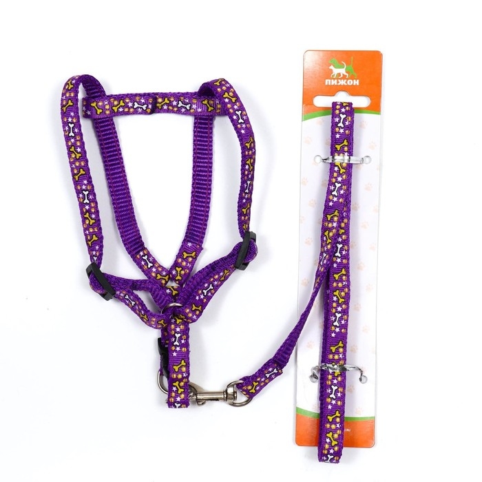 Комплект "Звёздные косточки", ширина 1 см, поводок 120 см, шлейка 23-35 см, фиолетовый