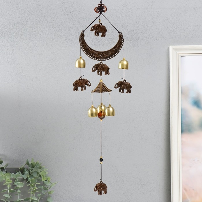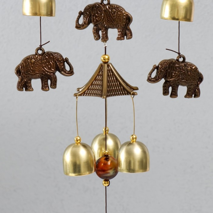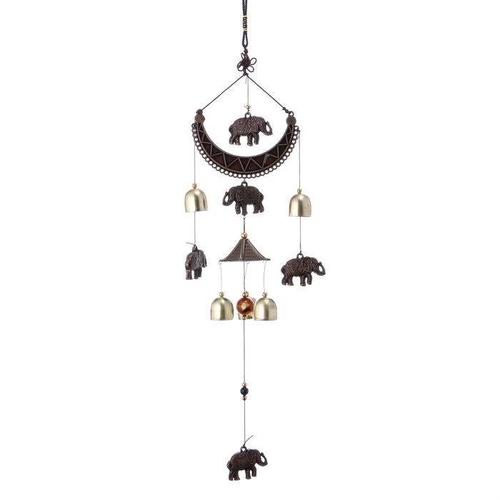 Музыка ветра металл "Слоны и ожерелье" 5 колокольчиков 58 см