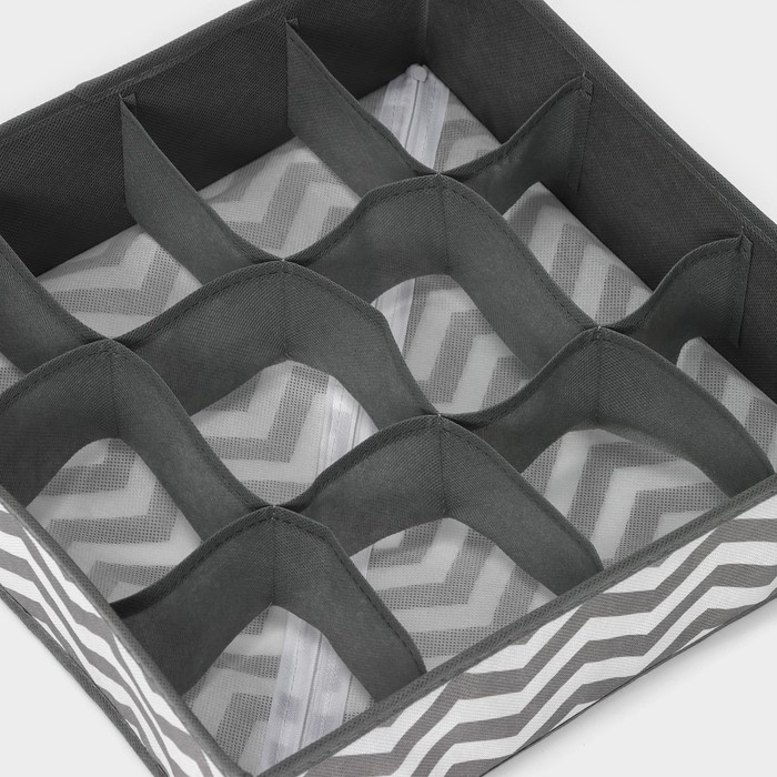 Органайзер для хранения белья «Зигзаг», 12 ячеек, 32×32×10 см, цвет серый