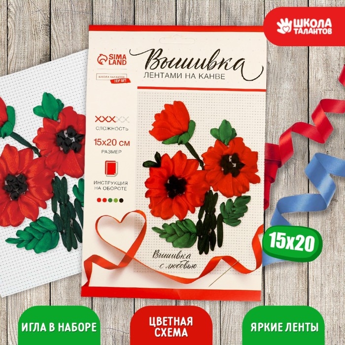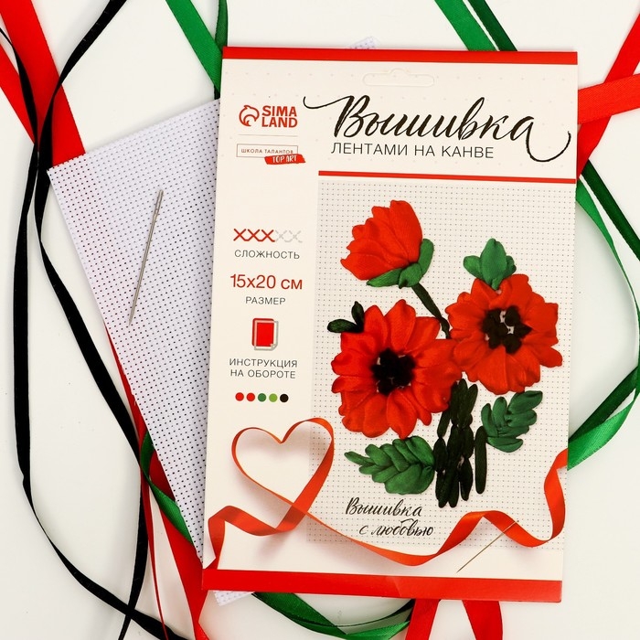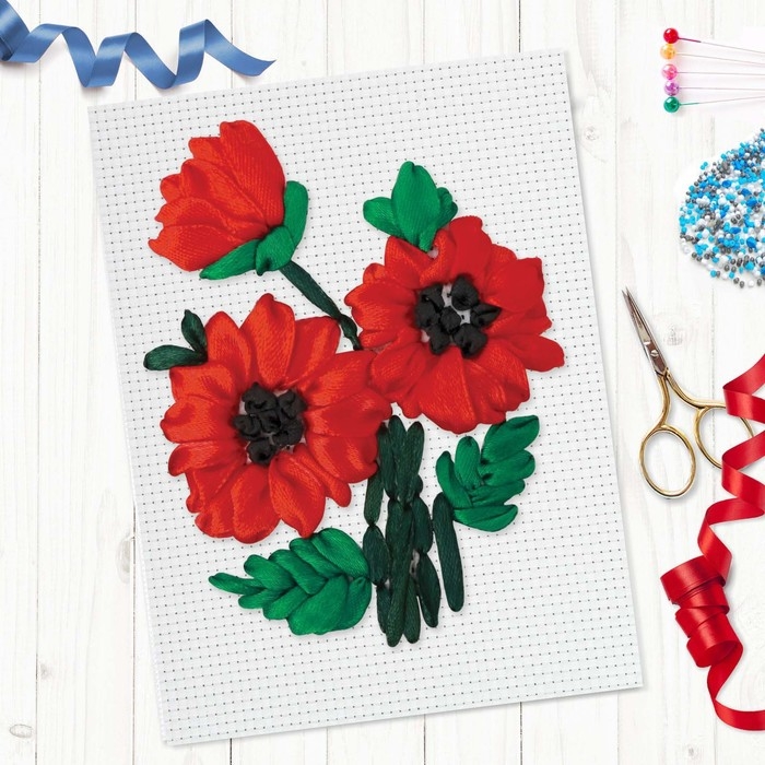 Вышивка лентами на канве «Красные маки», набор для творчества