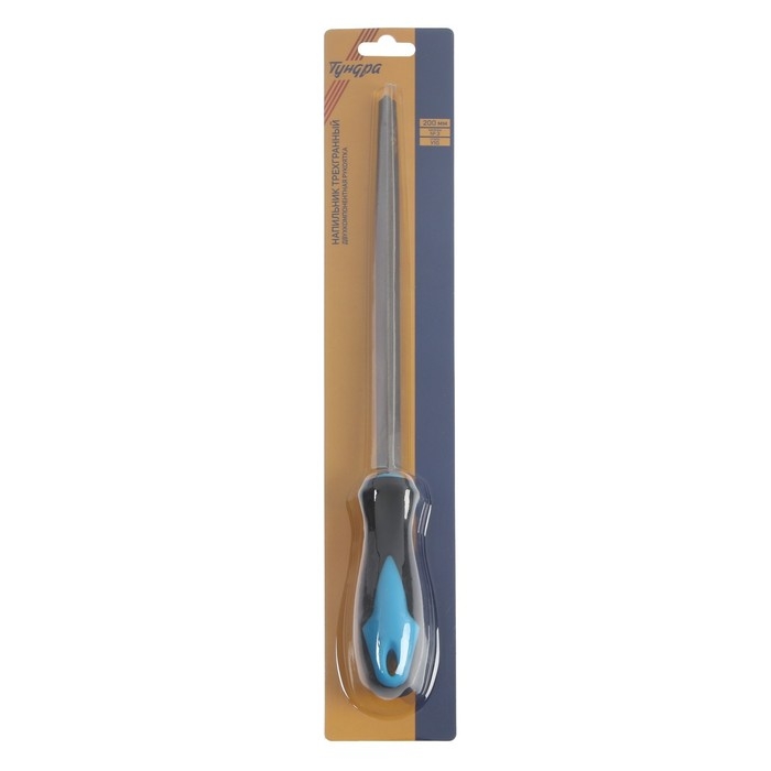 Напильник ТУНДРА, для заточки цепей пил, трехгранный, У10, 2К рукоятка, №3, 200 мм