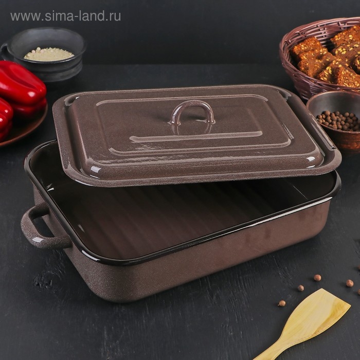 Эмалированная посуда соответствует и производится строго по стандартам ГОСТ 24788-2018. Стальной эмалированный противень производится из высококачественного металла, покрытого двумя слоями жаропрочной эмали. Для производства противня с крышкой используются экологически чистые цветные эмали, обеспечивающие высокую коррозийную стойкость.