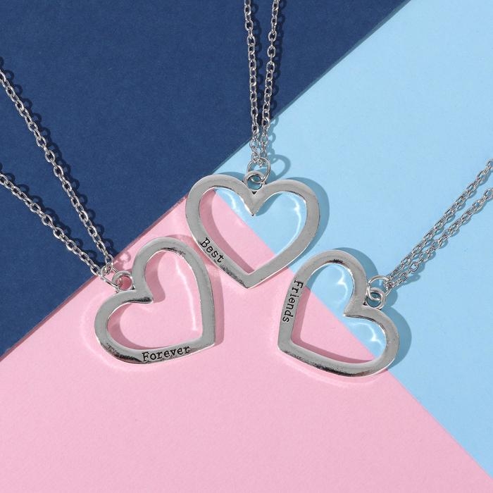Кулоны «Неразлучники» троица, цвет серебро, 45 см
