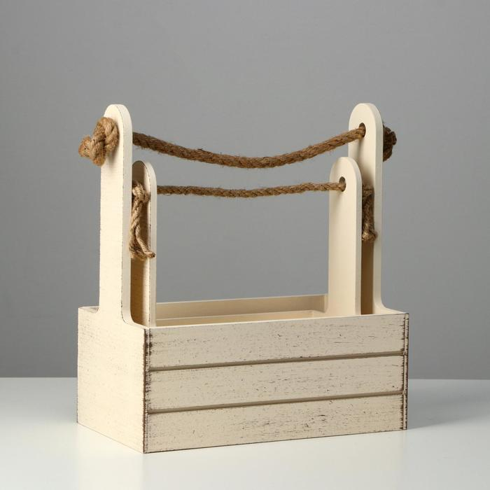 Кашпо деревянное 25×16×17 см "Мария", ручки боковые, МДФ, белое