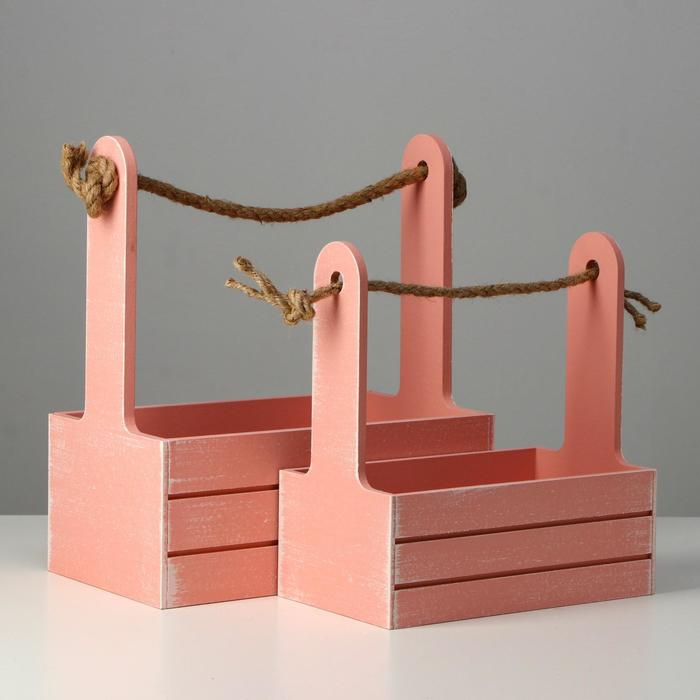 Набор кашпо деревянных 2 в 1 (25.5×15×30; 20×12×23) "Прованс", розовый