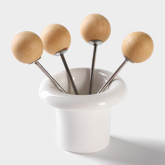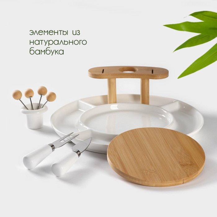 Набор фарфоровый для канапе и нарезки BellaTenero, 8 предметов: блюдо d=29,8 см, доска для нарезки, 2 ножа, 4 шпажки, цвет белый