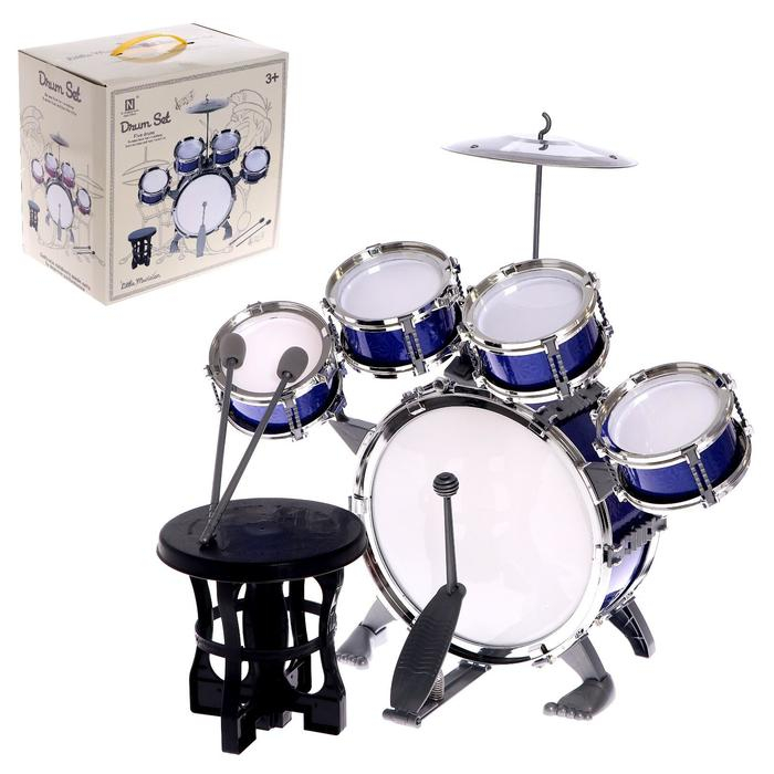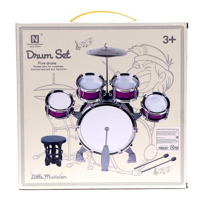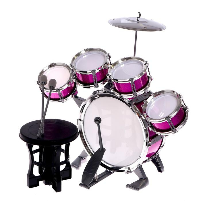 Барабанная установка «Басист», 5 барабанов, тарелка, палочки, стульчик, педаль, МИКС