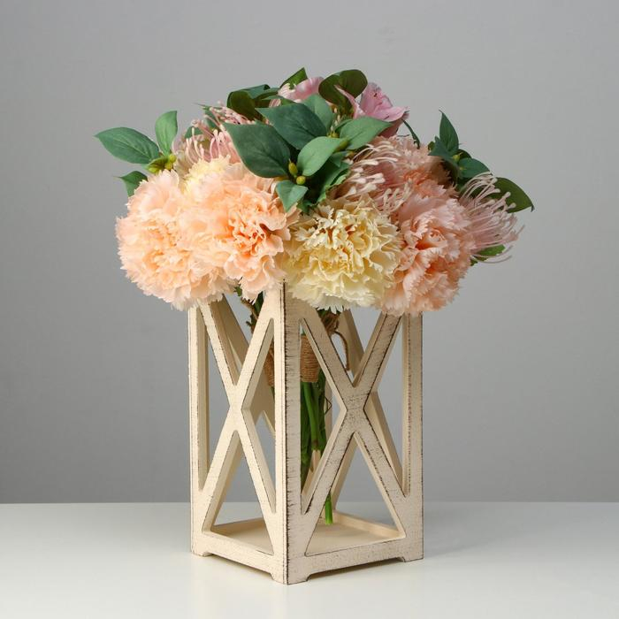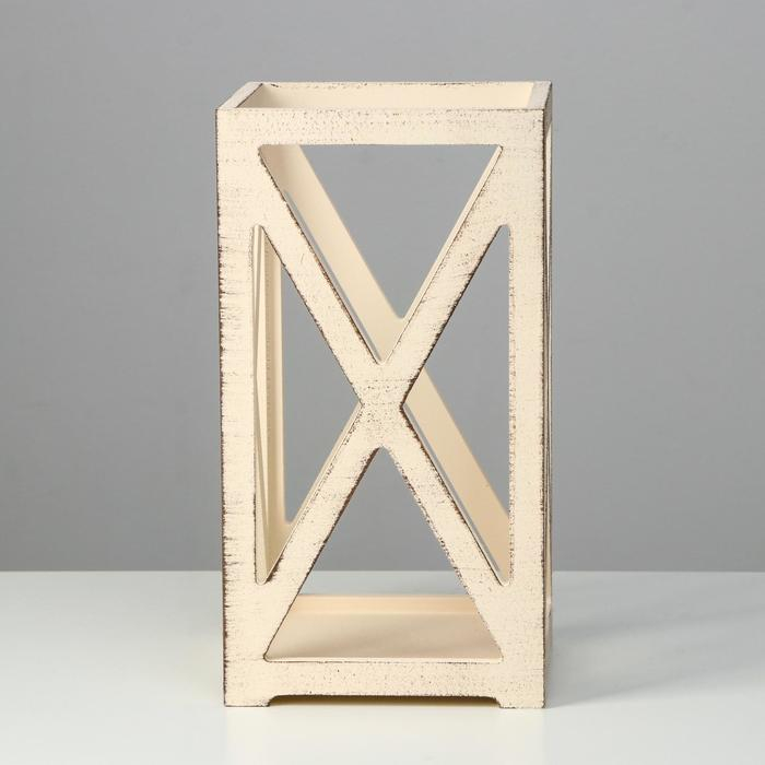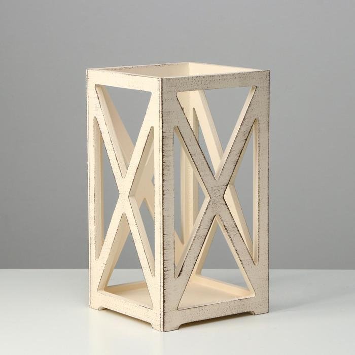 Кашпо деревянное 14×14×26 см "Фонарь Хай-тек Прованс", бежевый