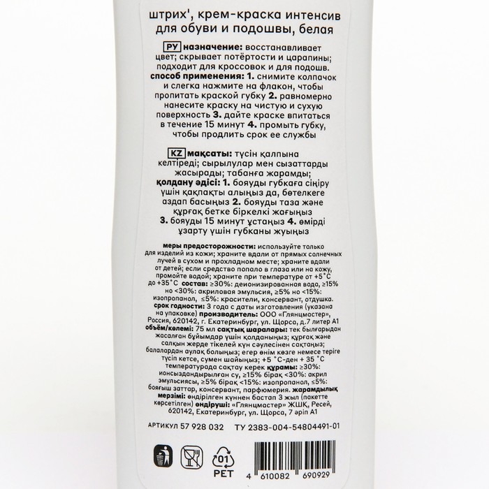 Краска-интенсив для белой обуви и подошвы Штрих, 75 мл
