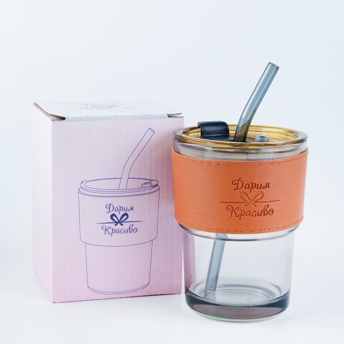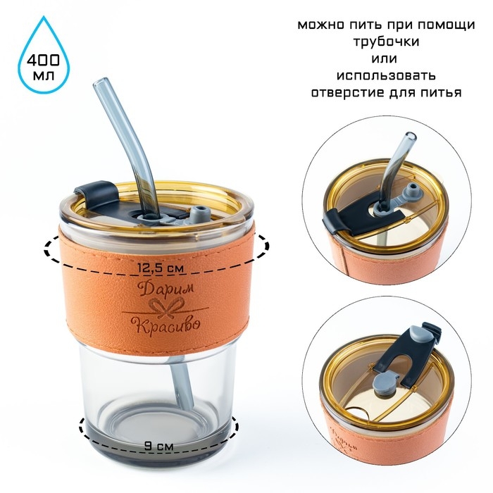 Термостакан, 400 мл, "Дарим Красиво", трубочка 18 см, 12.5 х 9 см