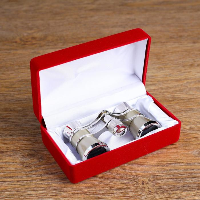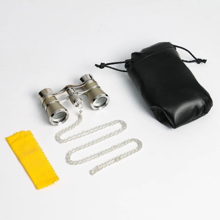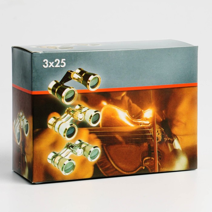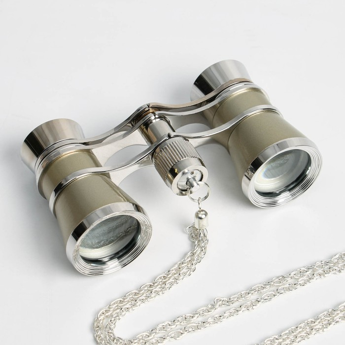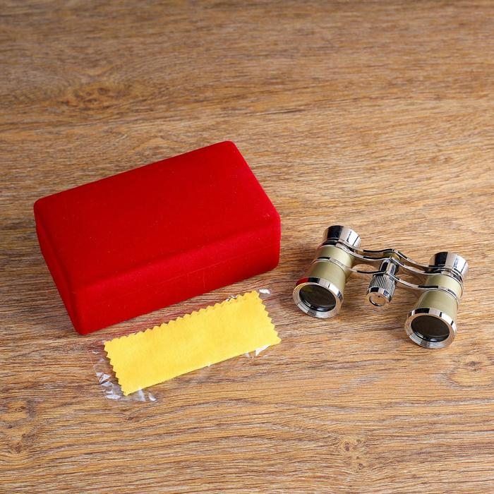 Бинокль театральный 3х25, хромированный, цвет бежевый, упаковка микс