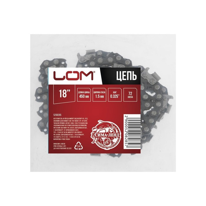 Цепь для бензопилы ЛОМ, 18", 450 мм, ширина паза 1.5 мм, шаг 0.325", 72 звена