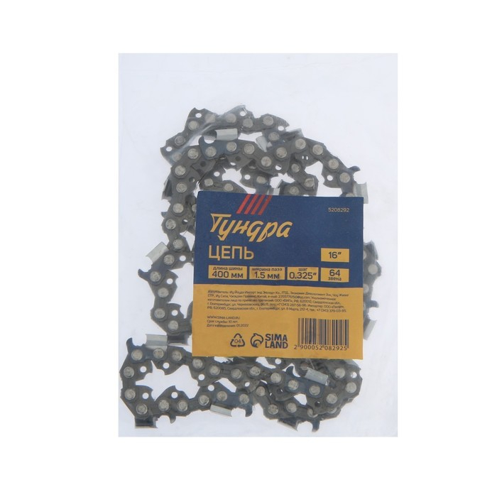 Цепь для бензопилы ТУНДРА, 16", 400 мм, ширина паза 1.5 мм, шаг 0.325", 64 звена