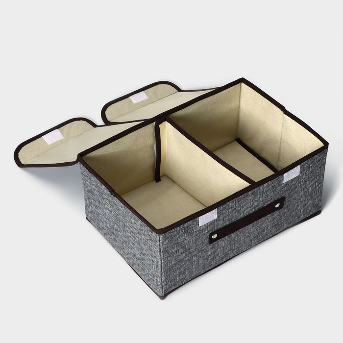 Короб стеллажный для хранения с двойной крышкой Доляна «Тэри», 36×25×16 см, цвет серый