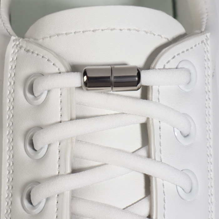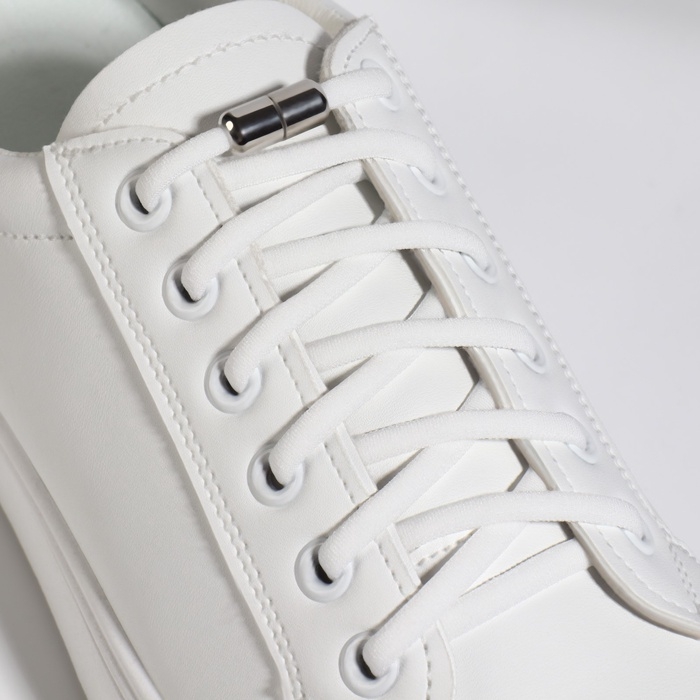 Шнурки для обуви, пара, плоские, с фиксатором, эластичные, 6 мм, 100 см, цвет белый