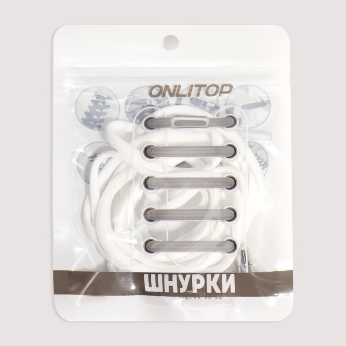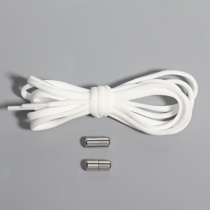 Шнурки для обуви, пара, круглые, с фиксатором, эластичные, d = 5 мм, 100 см, цвет белый