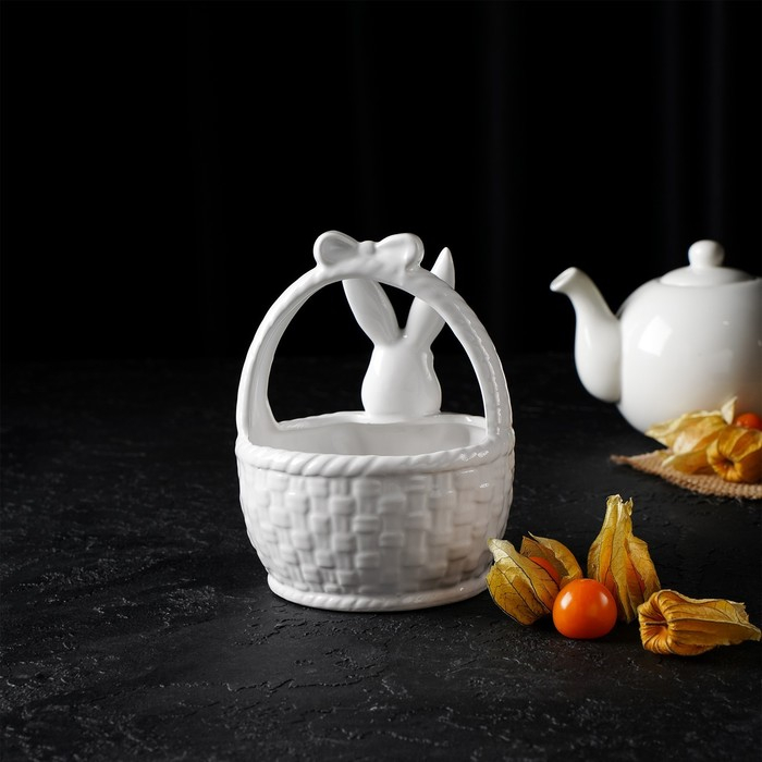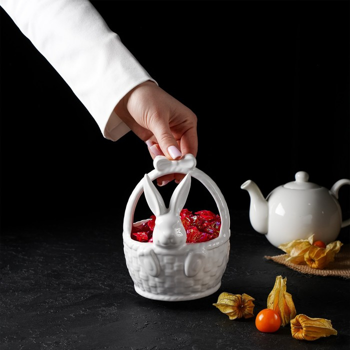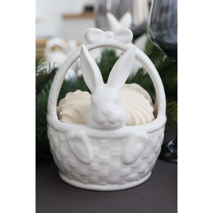 Конфетница Доляна «Зайка», 12×12×14,7 см, цвет белый