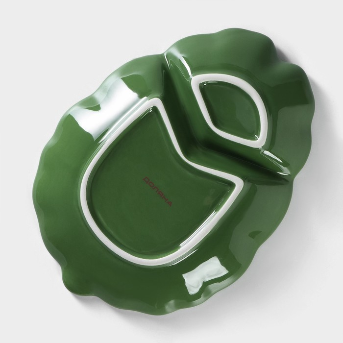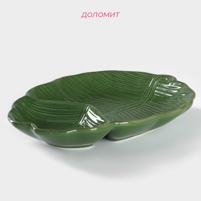 Менажница 2 ячейки Доляна «Лист», 24,7×18×3,8 см, цвет зелёный