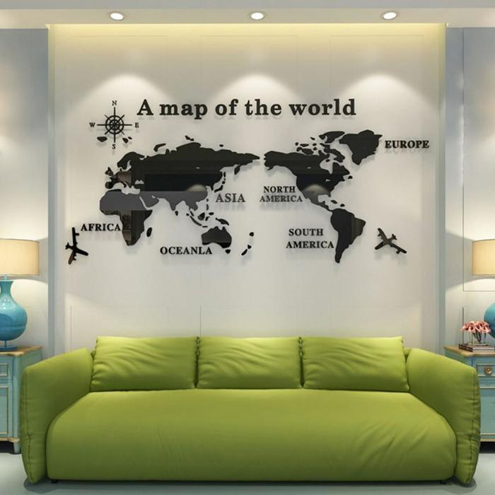 Наклейки интерьерные "Карта мира", зеркальные, декор на стену, панно 105 х 230 см