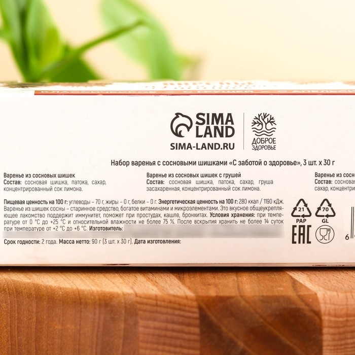 Набор варенья с сосновыми шишками «С заботой о здоровье»: классическое, с грушей, с апельсином, 90 г (3 шт. х 30 г).
