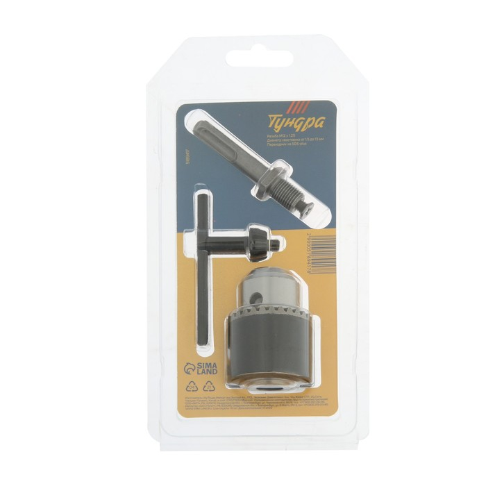 Патрон для дрели ТУНДРА, М12 х 1.25, 1.5 - 13 мм + переходник на SDS-plus