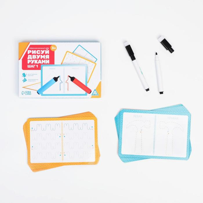 Нейропсихологический набор пиши-стирай «Рисуй двумя руками. Шаг 1», 20 карт, 3+