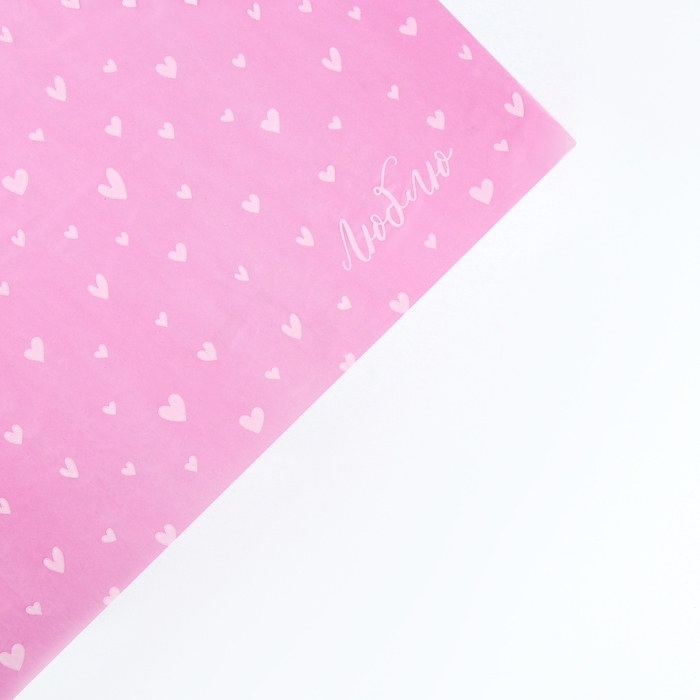 Плёнка для цветов упаковочная тишью влагостойкая «Люблю», розовая, 0.6 x 10 м